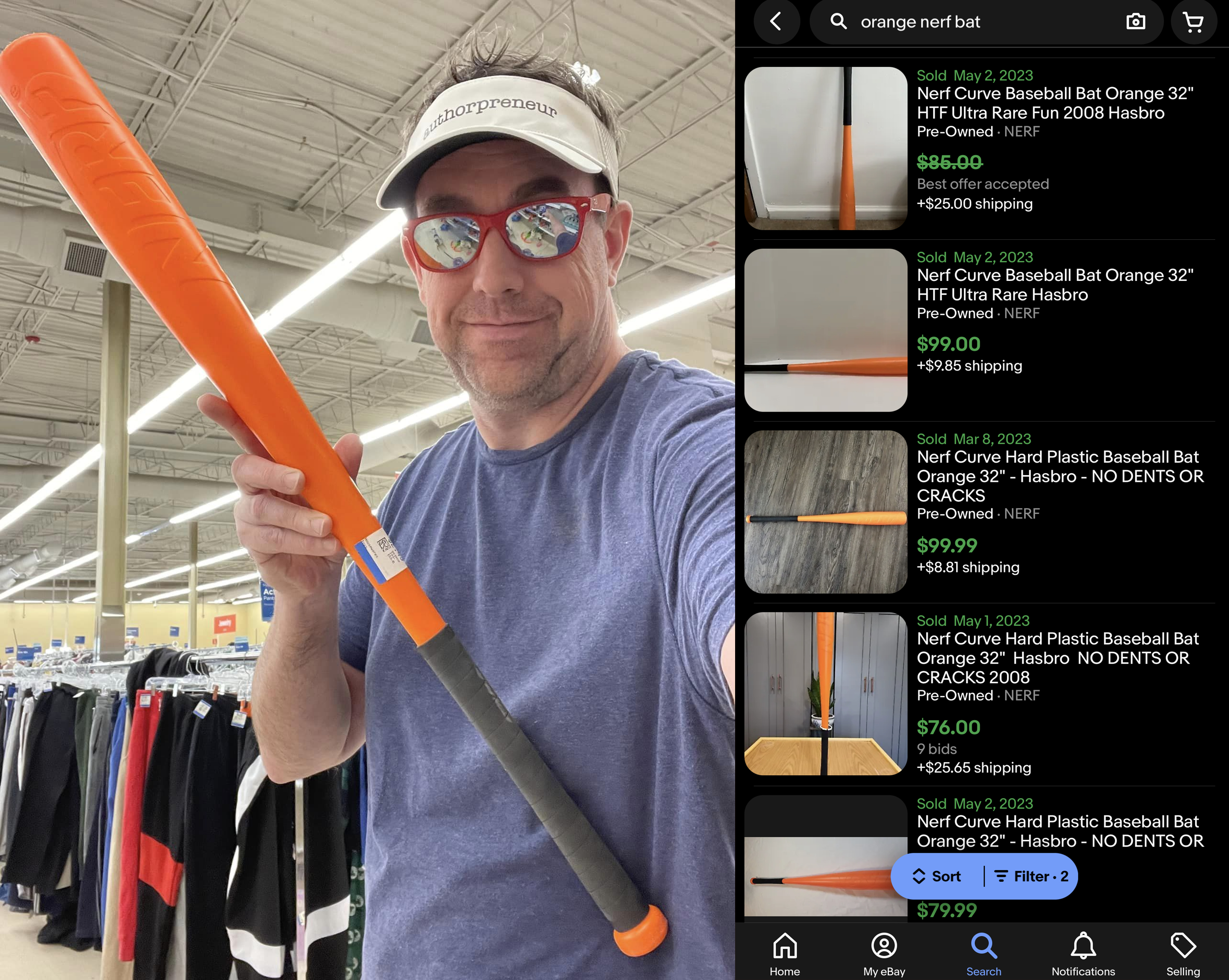 Like this NERF bat that I bought for $2.49 at a thrfit store that sells for $75-$100 on eBay!