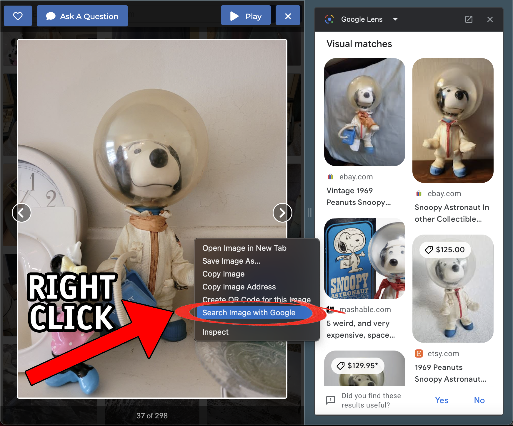 Can Google Lens get even better? YES! It's built into the Chrome browser so that you can search ANY IMAGE from ANY WEBSITE and, with just a couple of clicks, you can quickly and easily identify items and see what they're worth. Here is an example from EstateSales.net: