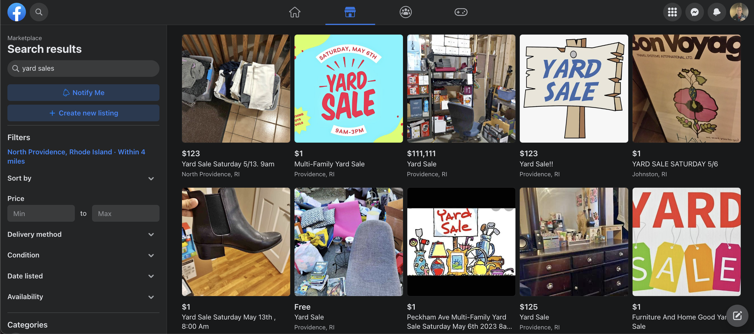 I primarily make a list of local yard sales by searching on Facebook Marketplace and by using the Craigslist app. There are other apps but I find that they mostly just pull from Facebook and Craigslist anyway.
