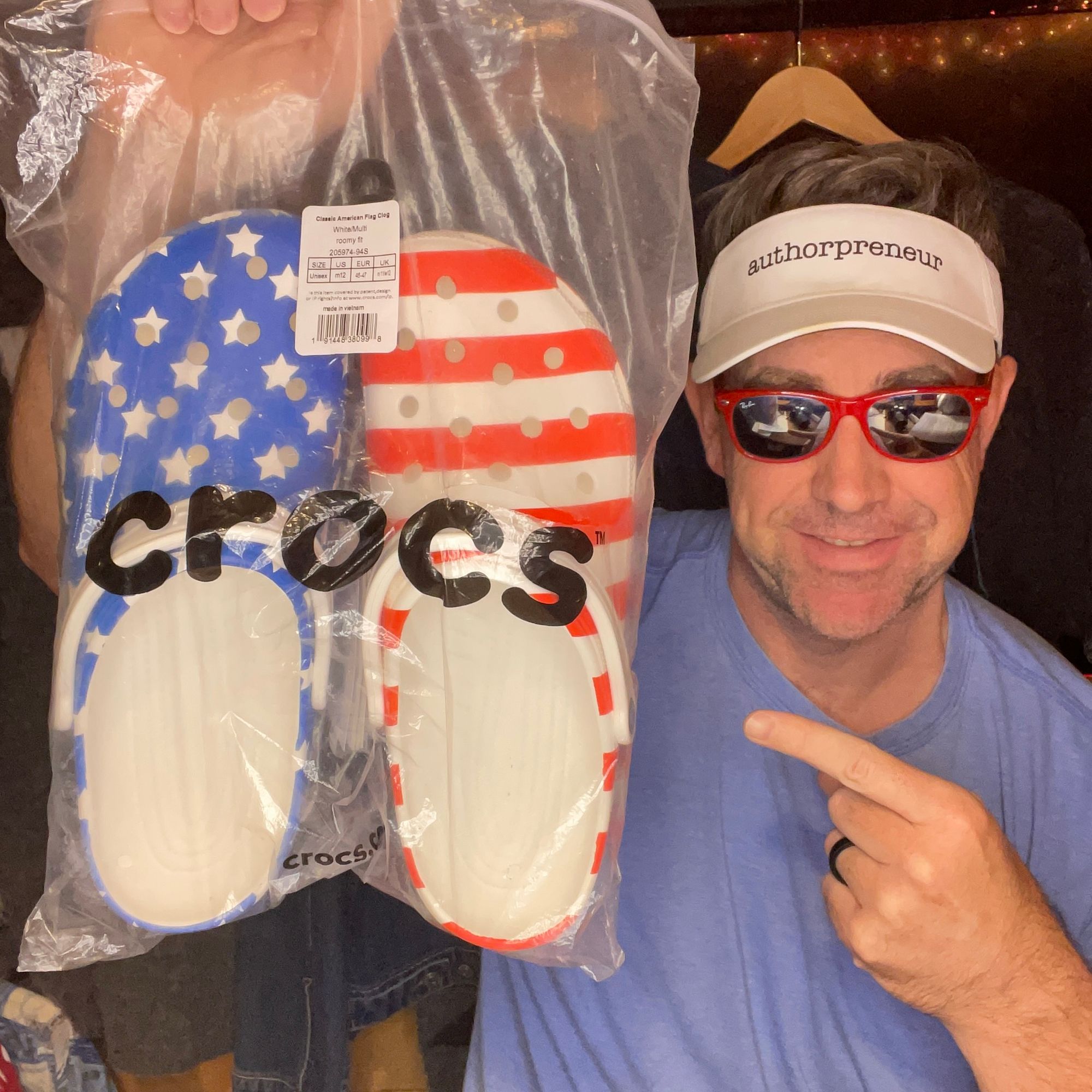 I saw these at a yard sale for just $5 and since they were brand new, I looked up American flag crocs on the eBay app. I saw that they sell for $50, so I bought them as an EASY FLIP!